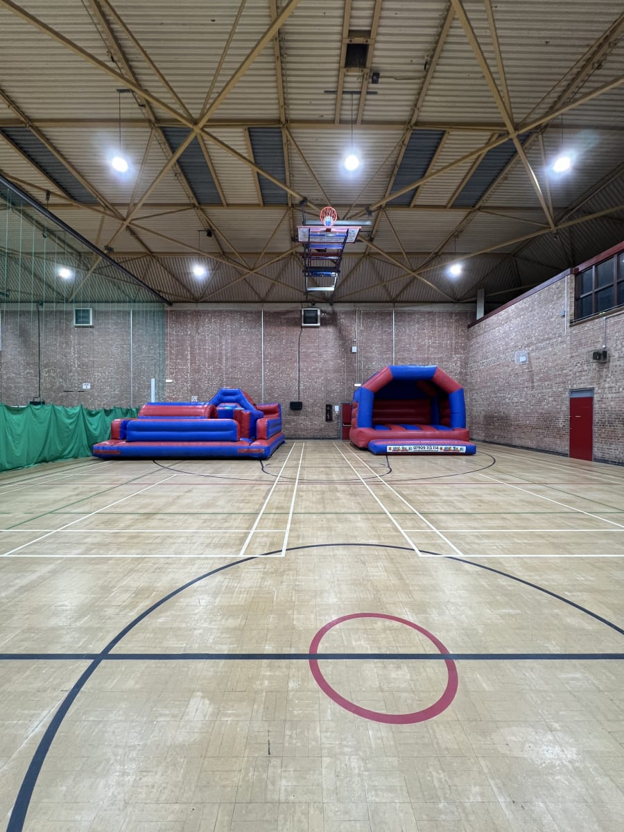 The highlight of Sutton High Leisure Centre is its impressive 8-court double sports hall. This enormous area is ideal for anyone wanting more than just one inflatable. In fact, it’s large enough to accommodate ten or more of our popular bouncy castles and other inflatables at once.
