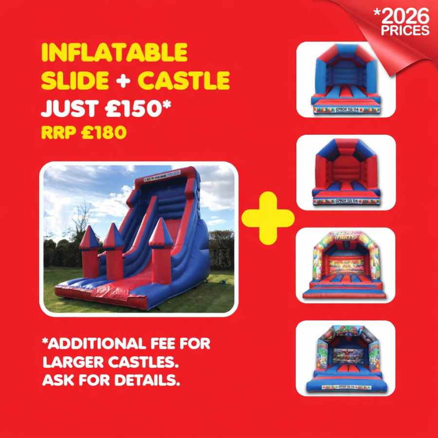 When you want party fun in St Helens, you can always get a mega discount with our impressive party packages! This amazing combo offers you the choice of one of two bouncy castles, the Party Time Bouncy Castle or the A-Frame Bouncy Castle, along with a giant slide, all at a reduced price.