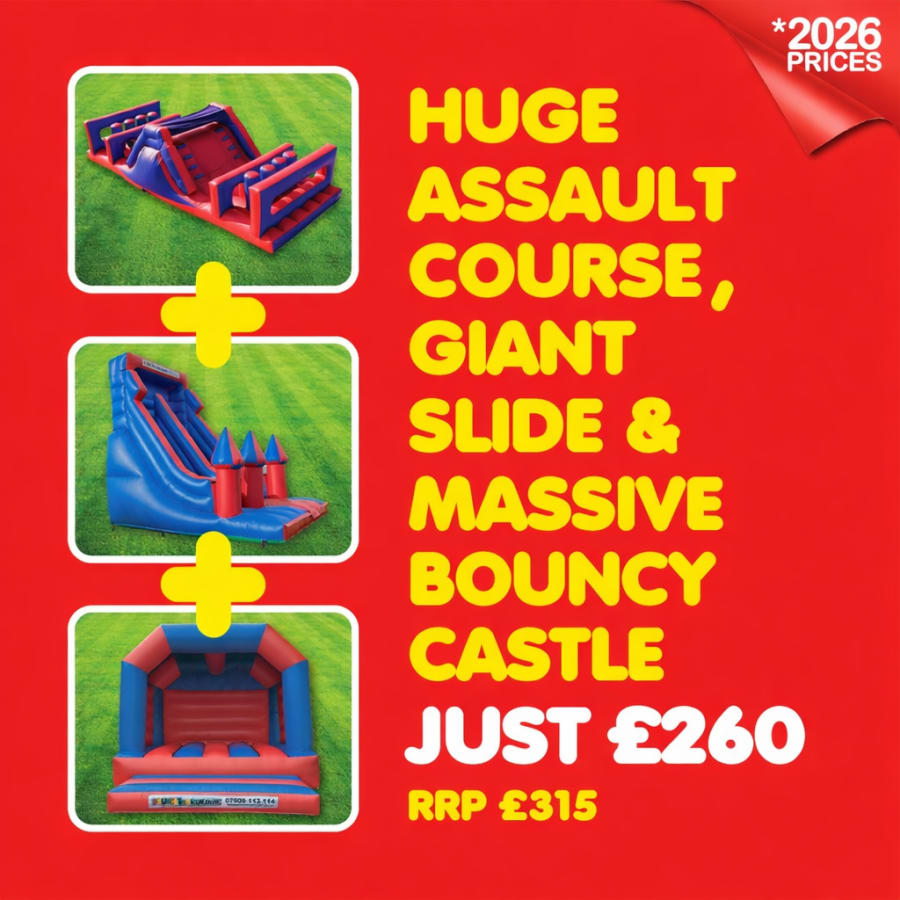 By combining these three magnificent inflatables into our Ultimate Adventure Package, we've created an experience that surpasses ordinary fun. And with our reduced package price, you can enjoy the thrill of all three inflatables at a fraction of the individual booking cost. We believe in providing unbeatable value to everyone, no matter what event you're hosting! Whether you're planning a birthday party, a community event, or a corporate gathering, this package promises endless excitement for all ages.