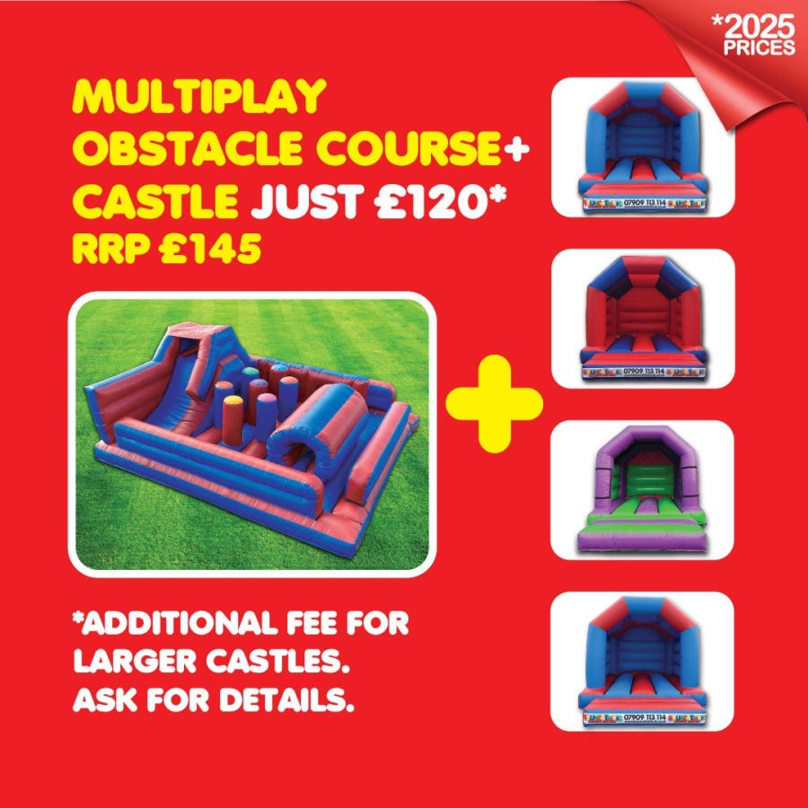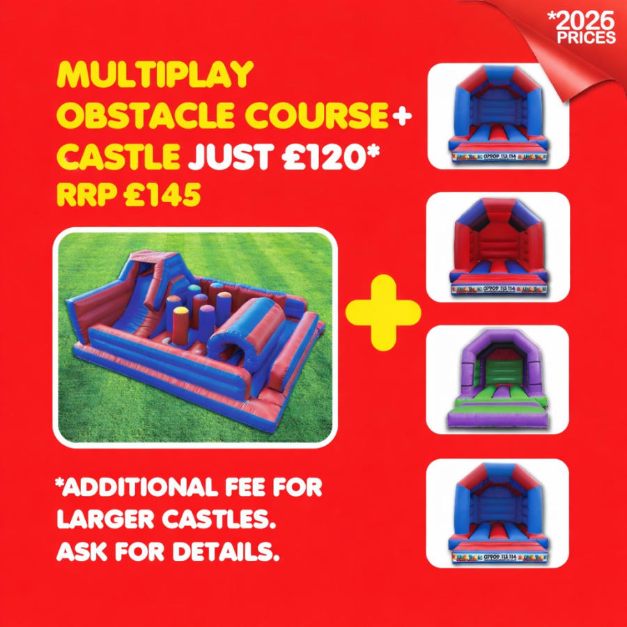 With our Multiplay Obstacle Course & Small Bouncy Castle package, you can add an exciting bouncy castle to our activity centre at a reduced price. Each bouncy castle offers its own unique features and designs, making it easy to find the right match for your event.